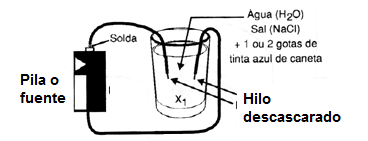 Las experiencias que involucran electricidad y química son atractivas, principalmente aquellas en las que se observan cambios de color de sustancias. Describiremos una, en especial, que es bastante simple, pudiendo ser realizada sin la necesidad de cualquier material de difícil obtención o producto que sea peligro en el manejo.