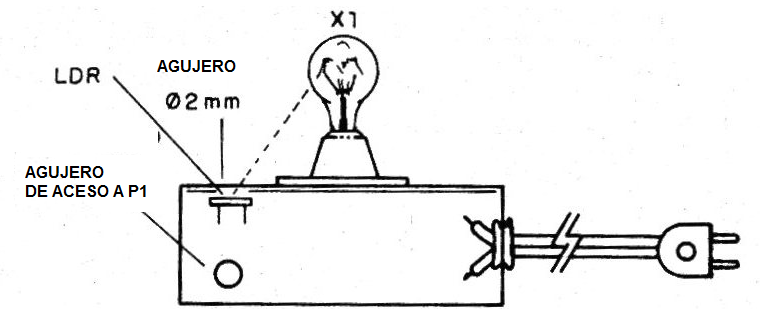 Tenga en cuenta que el LDR se coloca para recibir la luz de la lámpara.