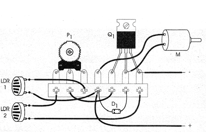 La segunda versión de un control foto-eléctrico (por luz) de un motor usando un transistor Darlington se muestra en la figura 1. (La primera es MIN508S)