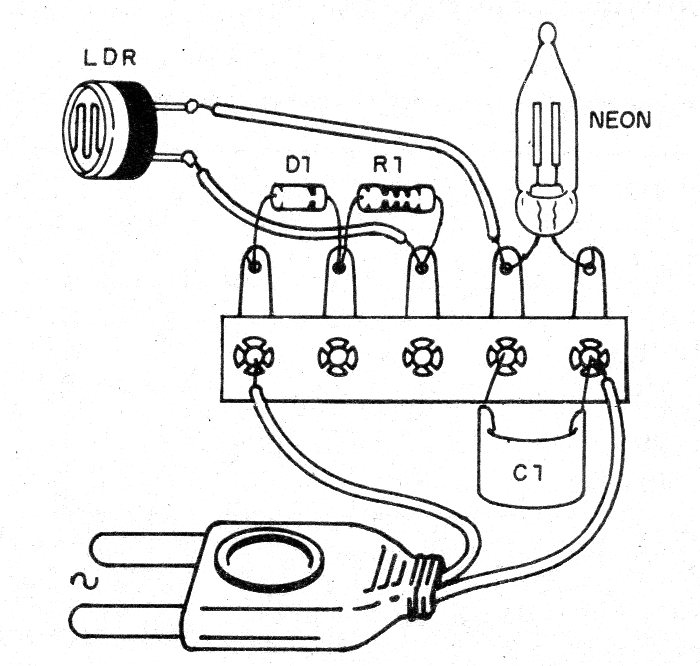 El LDR es redondo común y la lámpara de neón puede ser de cualquier tipo.