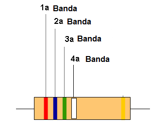 Dada por la siguiente tabla en los resistores de 4 anillos.