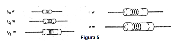 Los resistores de carbón se fabrican para pequeñas potencias de disipación, normalmente en el rango del 1/8 W a 2 W, como muestra la figura 5.