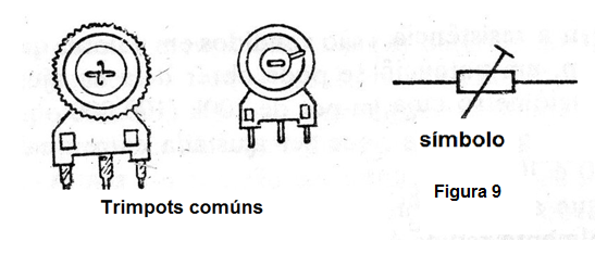 En la figura 9 tenemos el aspecto de un trimpot común y su símbolo. Esto se hace con una tira semicircular de grafito sobre la que corre un cursor.