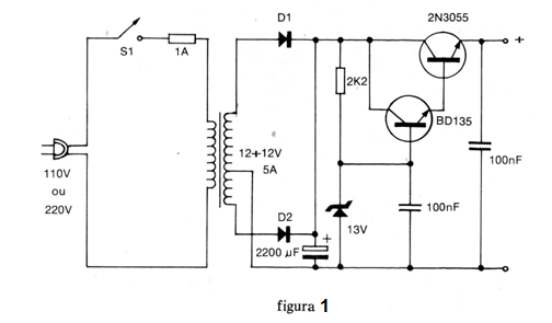 En la figura 1 damos un circuito de fuente a la bancada que puede ser útil en el trabajo de verificación de problemas en equipos para autos.