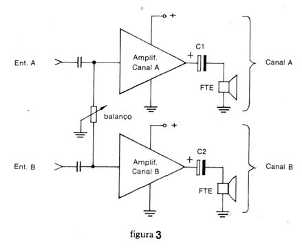 Para el caso de amplificadores con circuitos integrados, en la versión estéreo, tenemos dos canales independientes, como muestra la figura 3.