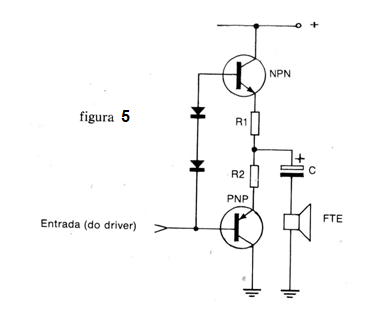 En esta configuración se utilizan transistores complementarios, es decir, un PNP y un NPN, de potencia montados en buenos radiadores de calor, normalmente en la parte posterior del aparato.