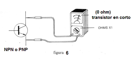 La prueba del transistor se puede hacer directamente con el multímetro, midiendo las resistencias entre sus terminales, como muestra la figura 6.