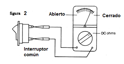 Con el interruptor abierto se debe leer una resistencia infinita en el instrumento, es decir, el puntero no debe moverse, quedando todo a la izquierda. Con el interruptor cerrado (encendido) el puntero debe ir todo a la derecha, indicando una resistencia nula.