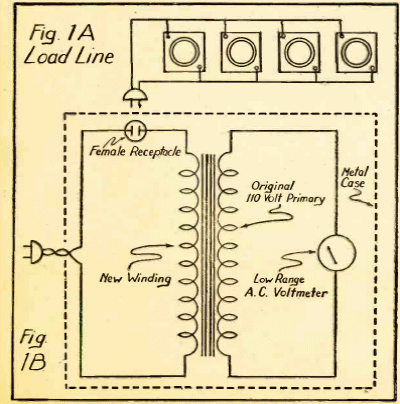 Esta práctica idea que ya hemos explorado en nuestro artículo más reciente, como modificaciones, la encontramos en un Radio Craft de 1942. El circuito utiliza un transformador con un devanado de baja tensión y alta corriente para generar una tensión de secundario proporcional a la potencia del dispositivo que está conectado en serie. Para la red de 127 V, el transformador debe tener 1 A para una potencia máxima de 120 W.