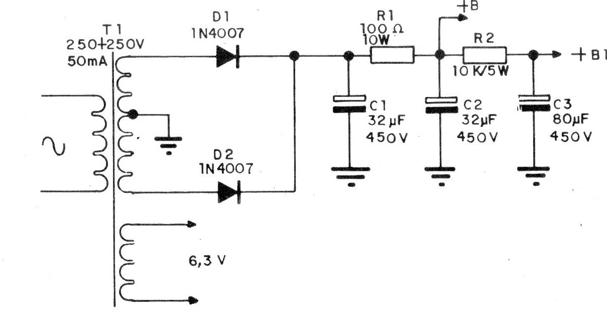 Esta es la fuente de alimentación indicada para el amplificador V755S. El componente crítico es el transformador. Los condensadores electrolíticos tampoco son muy comunes actualmente, ya que son tipos de alta tensión. Los resistores son de hilo.