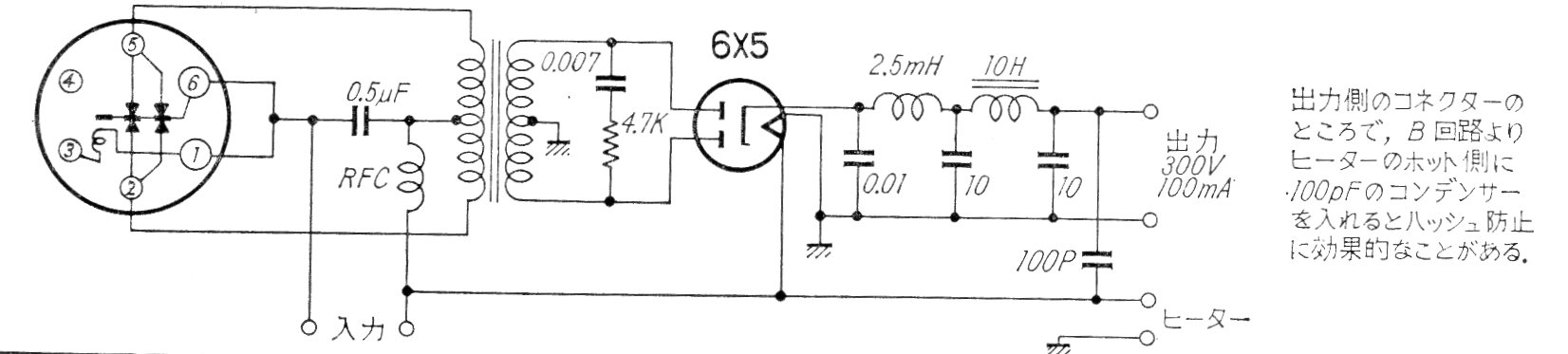 Este circuito de una documentación japonesa antigua muestra cómo se obtiene alta tensión para valvulados alimentados por la batería de un coche. En el caso, se utilizaba un vibrador mecánico, que aún se puede encontrar en casas especializadas en la recuperación de coches antiguos. El componente crítico es el transformador que, sin embargo, puede adaptarse a partir de un transformador de alimentación común.