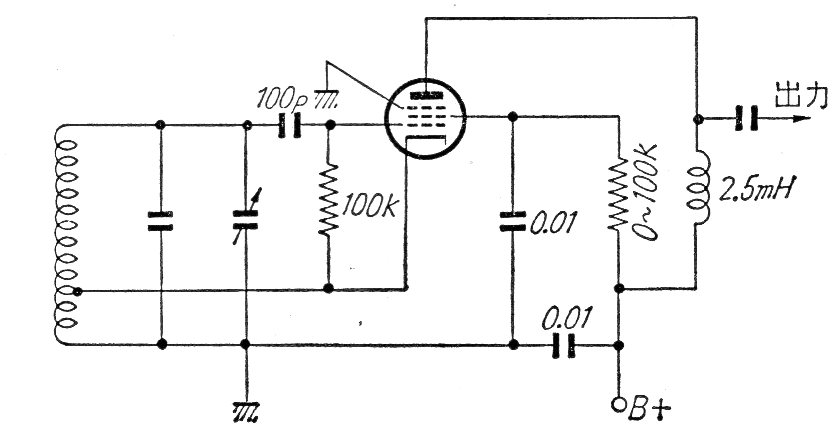 Encontramos este circuito en una documentación japonesa antigua. La bobina depende del rango de frecuencias deseado y la tensión de alimentación depende de la válvula.