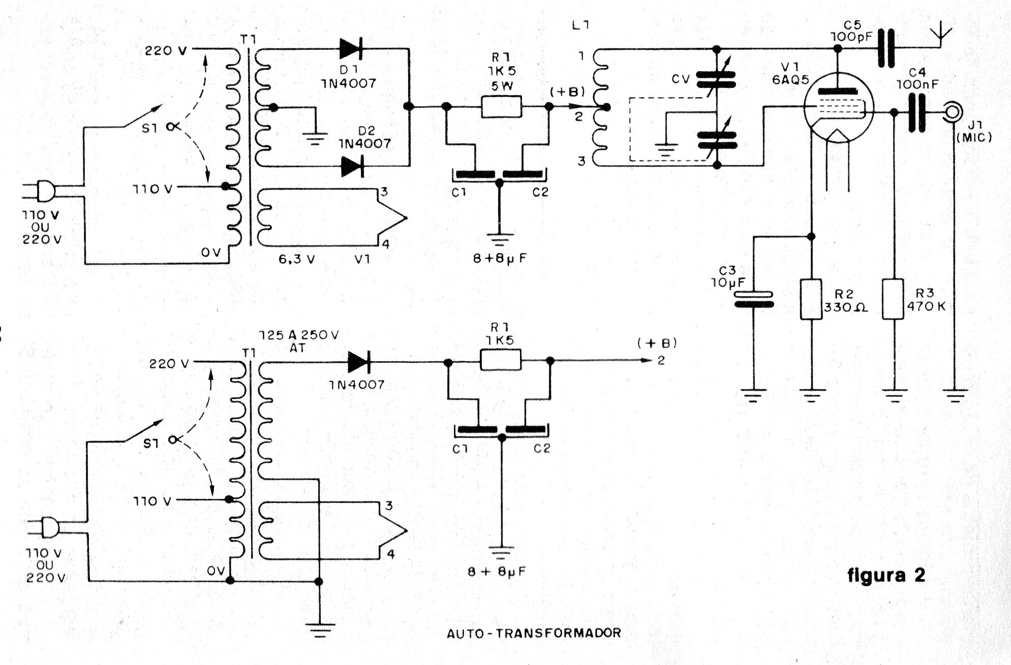 El circuito del transmisor se da en dos versiones básicas que utilizan el transformador y el autotransformador común. (Figura 2)