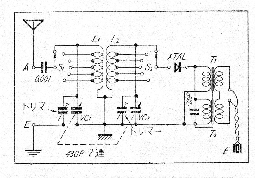 El circuito encontrado en una publicación de los años 50 ayuda a casar la impedancia de una antena con la entrada de un receptor de ondas cortas en la recepción de estaciones de determinadas frecuencias. No se dio información sobre las bobinas. El circuito es totalmente pasivo no necesitando fuente de alimentación.