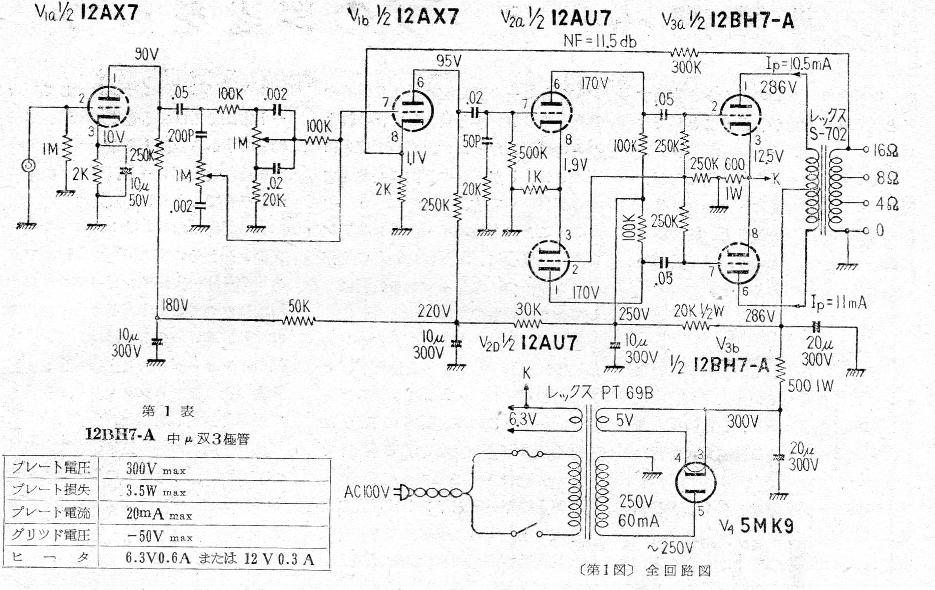 Este amplificador de 3,5 W (12BH7) fue encontrado en una documentación japonesa de 1959. Las válvulas son pocos comunes y los transformadores también presentan dificultades para la obtención.