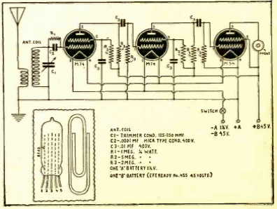 Las microvalvulas que estaban disponibles en la década de 1940 permitieron receptores muy compactos como el que se muestra en el diagrama. El receptor tenía el tamaño de una radio de transistores de las primeras generaciones, pero claro necesitaba baterías que aumentaban mucho su consumo. El receptor que se muestra es de una publicación de 1942.