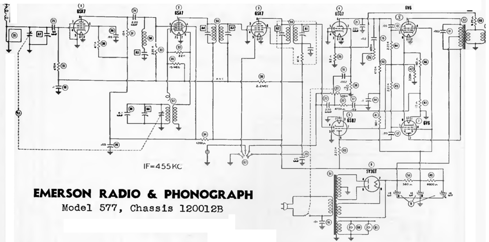 Radio de la década de 50 con salida en push-pull de alta calidad. El circuito se destinaba a la banda de ondas medias y tenía transformador en la fuente de alimentación.