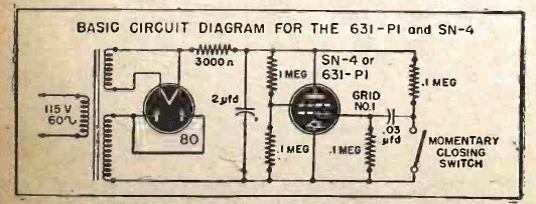 La válvula de termoscopio fue un componente de la década de 1940. Este circuito es una aplicación de este componente que indica la temperatura. El circuito es de una publicación de 1943. El tubo constaba de un termopar.