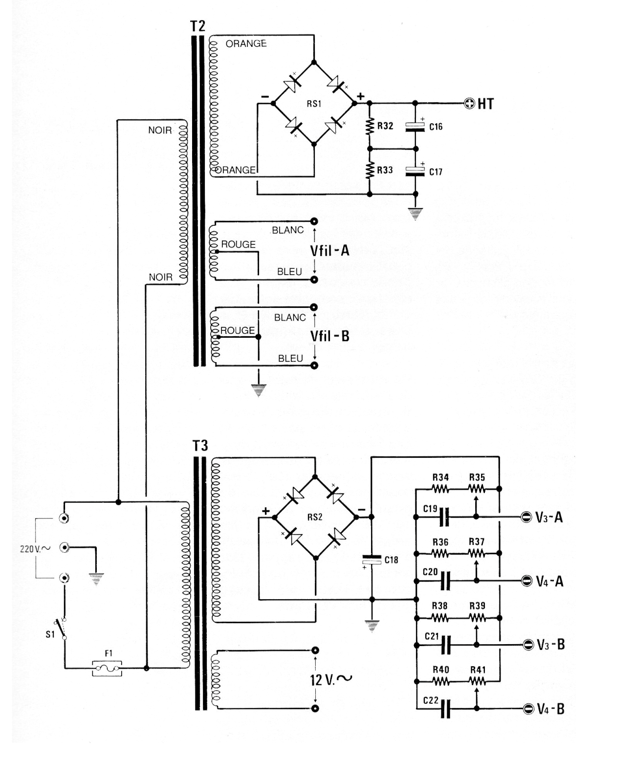 Esta es la fuente de alimentación para el amplificador valvular con EL34 dado en V234. Esta fuente proporciona todas las tensiones necesarias al circuito. La lista de material también está en el artículo VV606S.