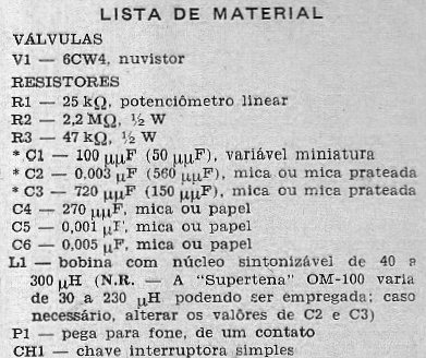Los Nuvistors eran una familia de válvulas miniaturizadas con características que permitieron crear proyectos muy interesantes como el que encontramos en una publicación de 1967. El circuito presentado es un multiplicador de factor Q, es decir, un circuito que aumenta la selectividad de un receptor. o incluso comunicaciones de onda media. El circuito está conectado a la válvula mezcladora y debe ajustarse para tener el mejor efecto en la sintonización. La alimentación del circuito se obtiene del propio receptor. Además de la válvula, el otro componente crítico es la bobina L1.
