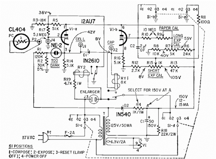 Este sofisticado temporizador fue publicado en la revista Radio Electronics en febrero de 1964 en un artículo que describía su montaje. El circuito tiene largos espacios determinados por los condensadores. Originalmente estaba indicado para aplicaciones en fotografías midiendo tiempos de exposición.