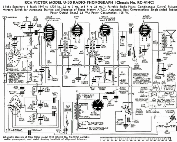 Como era común en ese momento, este receptor de 1941 era tanto una radio como un tocadiscos. El circuito fuente mediante transformador tenía 4 bandas de onda y preveía el uso de una buena antena externa en el caso de ondas cortas. La FI era de 455 kHz.