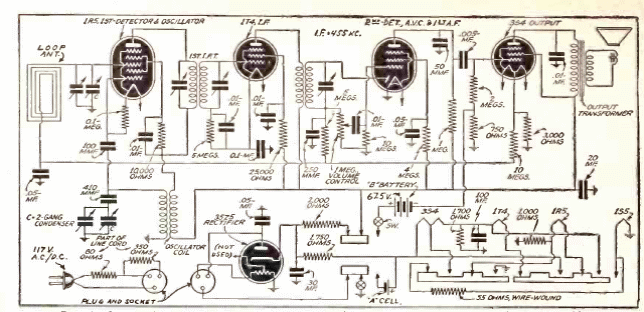 Se consideraba un receptor portátil, pero conectado a la red eléctrica, con la opción de utilizar pilas, lo encontramos en una publicación de 1941. El circuito de FI de 455 kHz utilizaba una antena de cuadro sintonizando la banda de onda media. La salida era por altavoz.