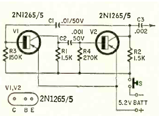 Este multivibrador estable para uso como inyector de señal se publicó en la revista Radio Electronics en marzo de 1962. El circuito funciona con baterías.