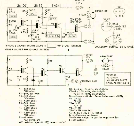 Publicado en un artículo de la revista Radio Electronics de febrero de 1960, este circuito utiliza transistores de la época. La configuración era para baterías de 12 V.