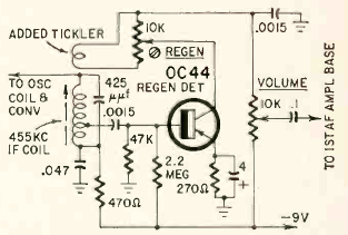 Esta interesante configuración de receptor de un solo transistor solo se encontró en la revista Radio Electronics de marzo de 1961. La señal de salida debe aplicarse a un amplificador.