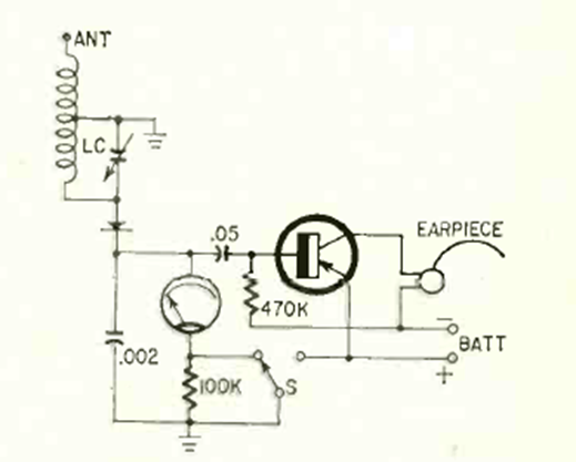 Este circuito medidor de intensidad de campo es para probar transmisores pequeños. El circuito es de una Radio Electronics de febrero de 1963.