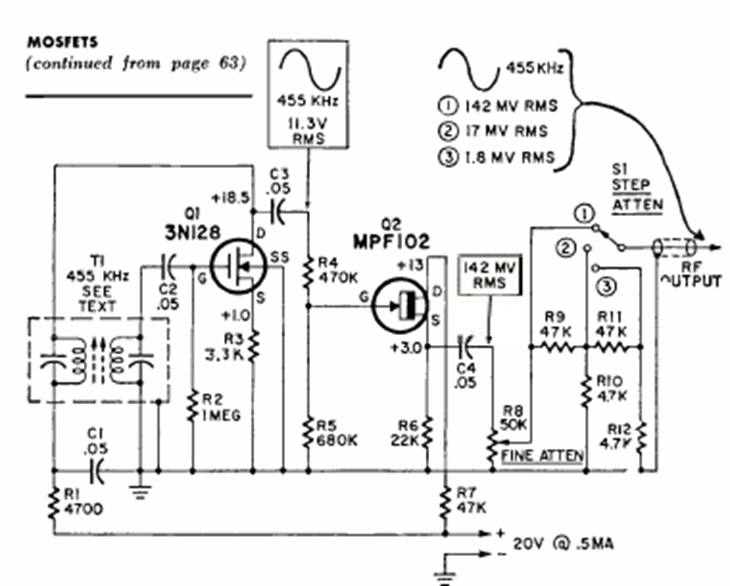 Encontramos este circuito en una revista de Radio Electronics de diciembre de 1969. El circuito utiliza un MOSFET de baja potencia que es poco común en la actualidad.