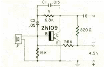 Este preamplificador para tocadiscos con cápsulas de cristal se encontró en la revista Radio Electronics de junio de 1959. El transistor es de germanio, común en la época.