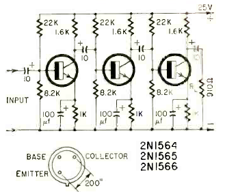 Este circuito de bajo voltaje se encontró en la revista Radio Electronics de noviembre de 1960 anunciando nuevos transistores. El circuito utilizaba transistores de silicio.