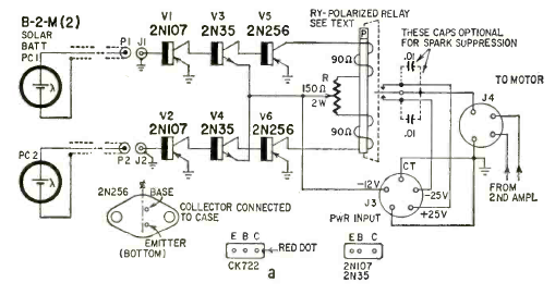 Este circuito que puede adaptarse para un robot seguidor de luz se encontró en la revista Radio Electronics de mayo de 1962. El circuito utiliza transistores comunes en ese momento y un relé de dos bobinas.
