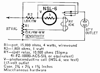 Este circuito con componentes pasivos utiliza un LDR como sensor. El potenciómetro ajusta la sensibilidad. El relé es del tipo de alta tensión para corriente alterna.