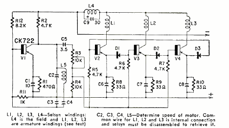 Este circuito fue encontrado en la revista Radio Electronics de julio de 1960. Los componentes utilizados son transistores de la época.