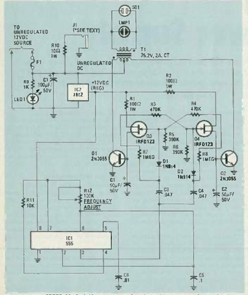 Este circuito UPS apareció en la revista Radio Electronics en marzo, 1985. Los componentes utilizados siguen siendo comunes y algunos pueden ser difíciles de obtener.