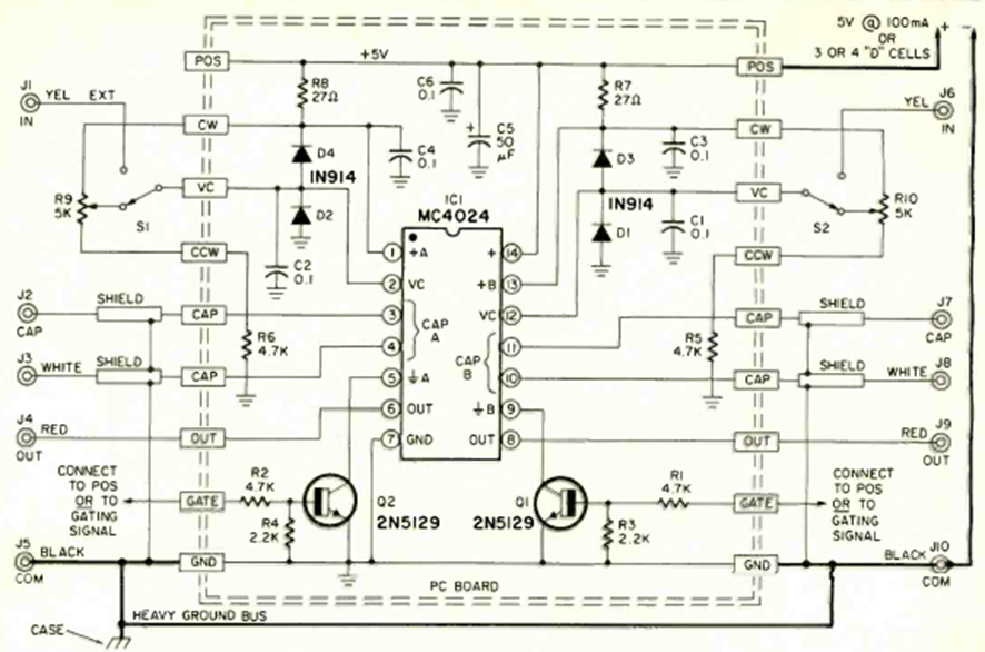 Este generador de reloj dual apareció en la revista Radio Electronics de febrero de 1972. Está destinado a proyectos de banco o aplicaciones de enseñanza y emplea lógica TTL.