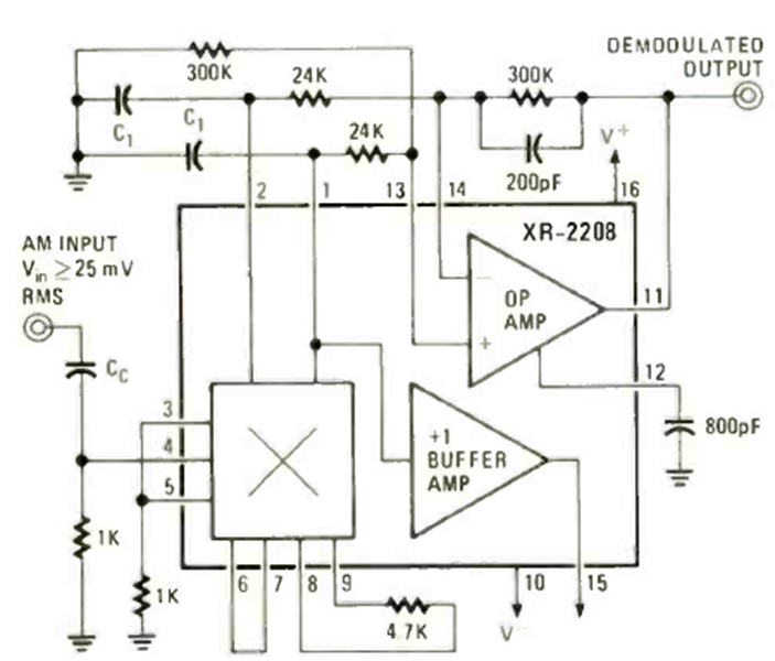 Este circuito fue encontrado en la revista Radio Electronics de abril de 1978. La fuente de alimentación debe ser simétrica y la frecuencia máxima de funcionamiento ronda los 100 MHz.