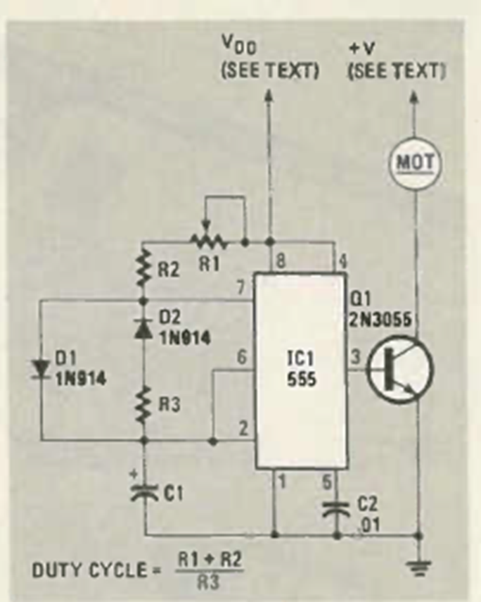 Otra configuración de las muchas similares que tenemos en este apartado. Esto es de una revista de Radio Electronics de junio de 1985. El transistor se controla según la potencia del motor.