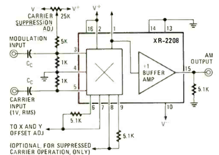 Este circuito lo encontramos en la revista Radio Electronics de abril de 1978. La alimentación debe ser simétrica y la frecuencia máxima recomendada es del orden de 10 MHz.