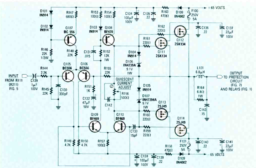 Este circuito de alta potencia se encontró en la revista Radio Electronics de julio de 1986 y requería una fuente de alta corriente. Se pueden probar MOSFET equivalentes.