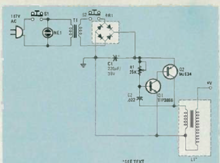 Este circuito de máquina Kirlian utiliza la bobina de encendido de un automóvil. El circuito es de una Radio Electrónica de mayo de 1986. Está indicado en un artículo que enseña a hacer fotos.
