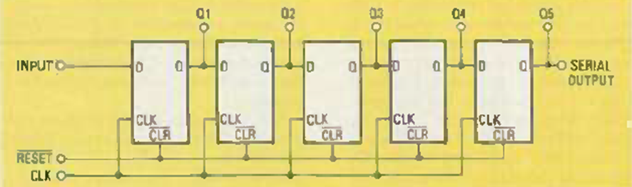 Este circuito muestra cómo usar flip-flops en un circuito SIPO con entrada en serie y salida en paralelo.