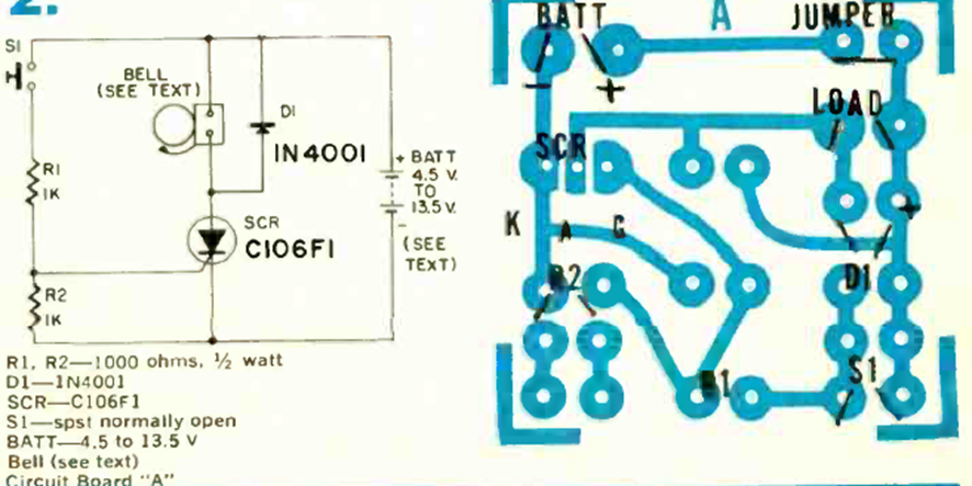 El sensor es el S1 en esta alarma que encontramos en una revista de Radio Electrónica de mayo de 1971. Se pueden utilizar varios sensores en serie. El SCR admite equivalentes de la serie 106.