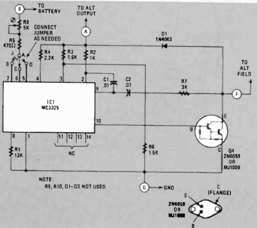 Hallado en la revista Radio Electronics de julio de 1980, este circuito hace uso de un circuito integrado de la época y de una fuente de alimentación Darlington. El Darlington debe estar equipado con un disipador de calor.