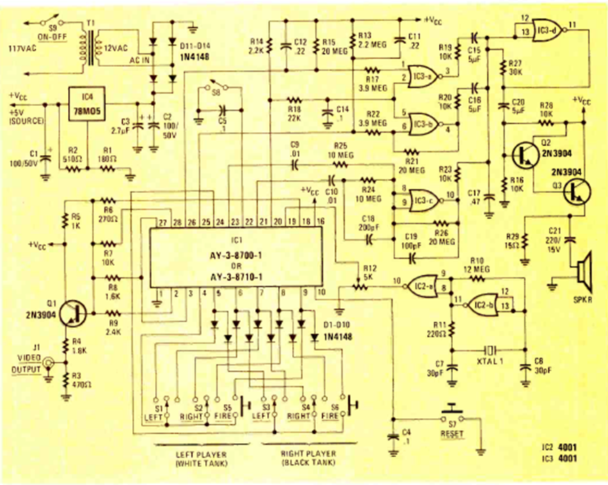 Este videojuego de 1978 salió en Radio Electronics en noviembre de este año. El circuito se basa en otra unidad integrada de la serie AY-3 y debe acoplarse a un televisor analógico.