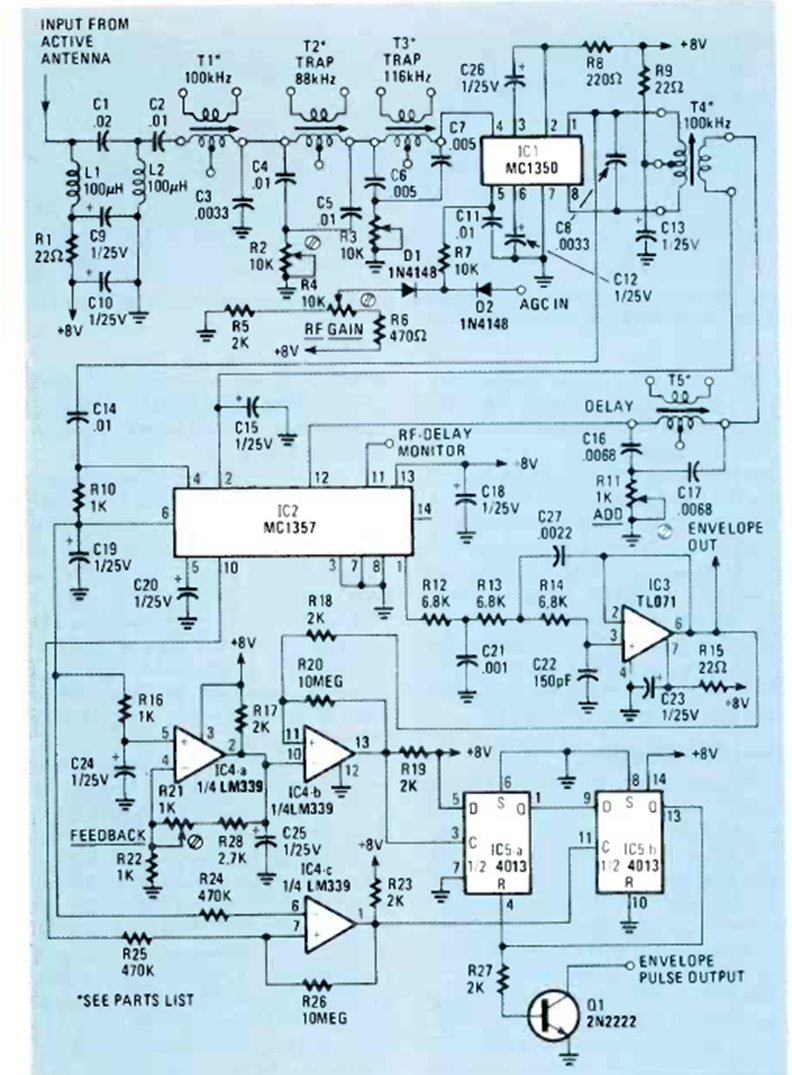 Este circuito para señales de baja frecuencia del sistema de guía Loran fue descubierto en la revista Radio Electronics en julio de 1983. El circuito fue descrito en un artículo que enseña cómo ensamblarlo.
