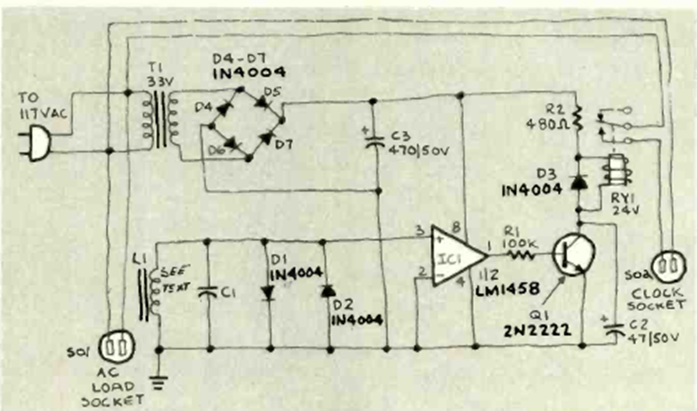 Encontramos este circuito en la revista Radio Electronics de agosto de 1984. El circuito tiene como objetivo controlar la potencia suministrada a una carga de corriente alterna. Los componentes son comunes.